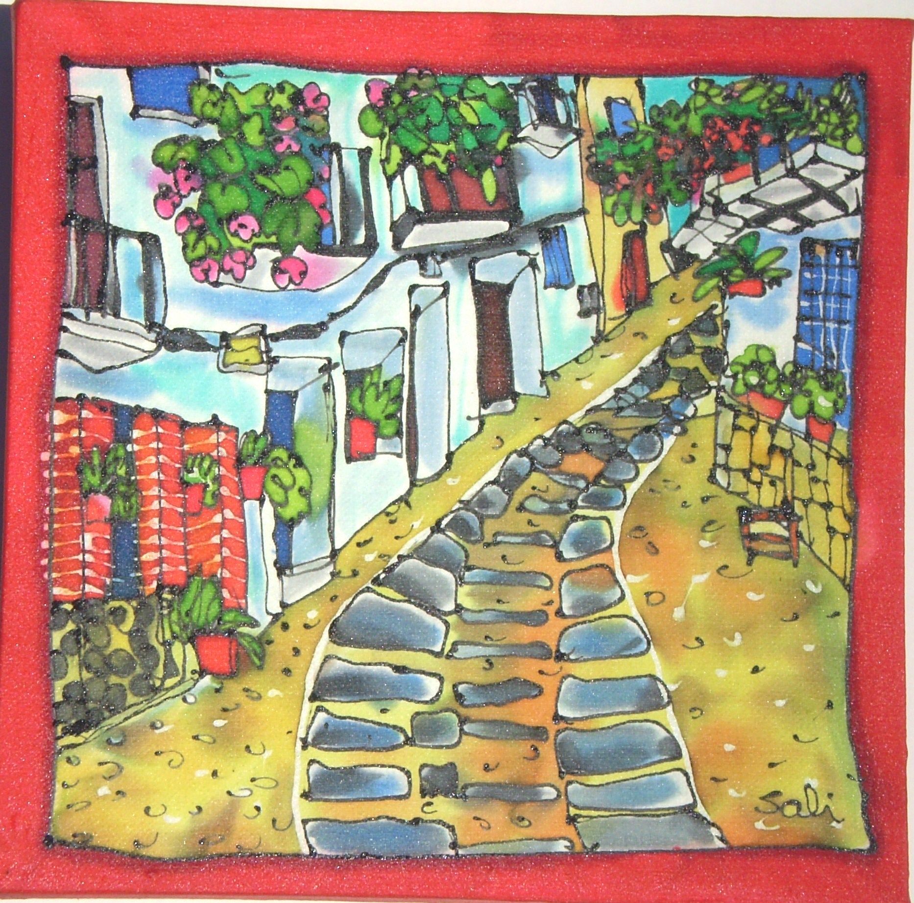 En Casa de Olivos, exhibimos algunas de las obras de Sali en los apartamentos y ofrecemos a los artistas la oportunidad de combinar sus vacaciones con una clase o taller de arte. Los talleres pueden centrarse en dibujo, pintura, decoración de botellas, frascos de vidrio o modelado de cerámica.