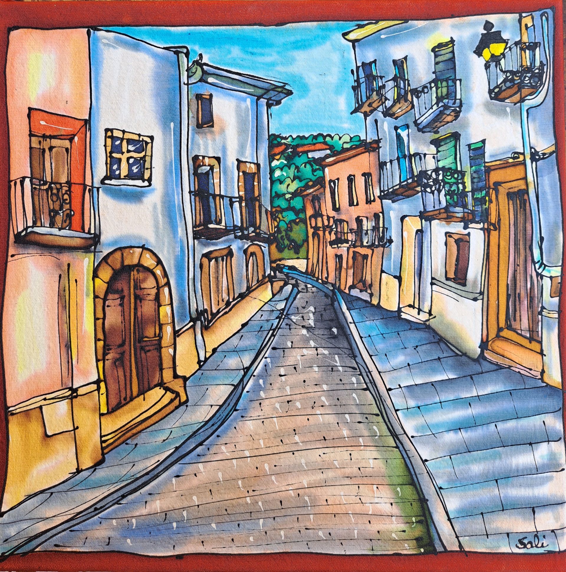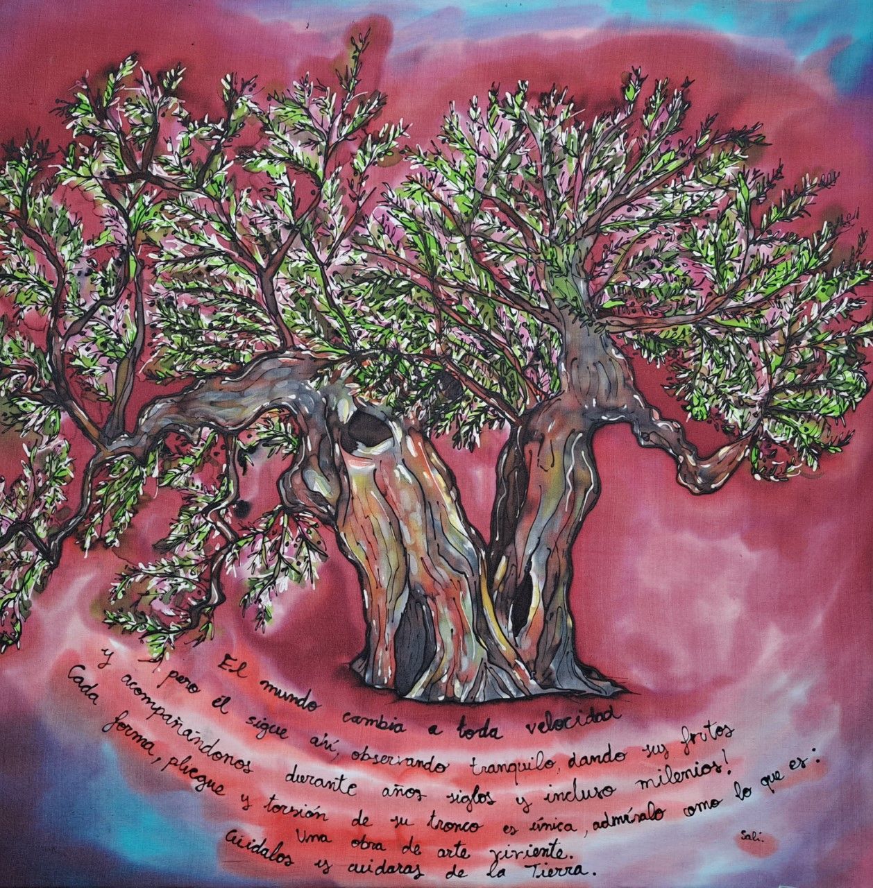 Nos complace presentarles a Sali García de Araoz, artista local especializada en pintura sobre seda, pintura acrílica, restauración creativa de muebles y arte con materiales reutilizados. Sus obras transmiten los colores brillantes e intensos tan típicos de la costa mediterránea española, y sus temas se inspiran en la zona, incluyendo pueblos, costas y paisajes. Nos encantan especialmente las representaciones de los olivos milenarios, tan característicos del Maestrazgo.