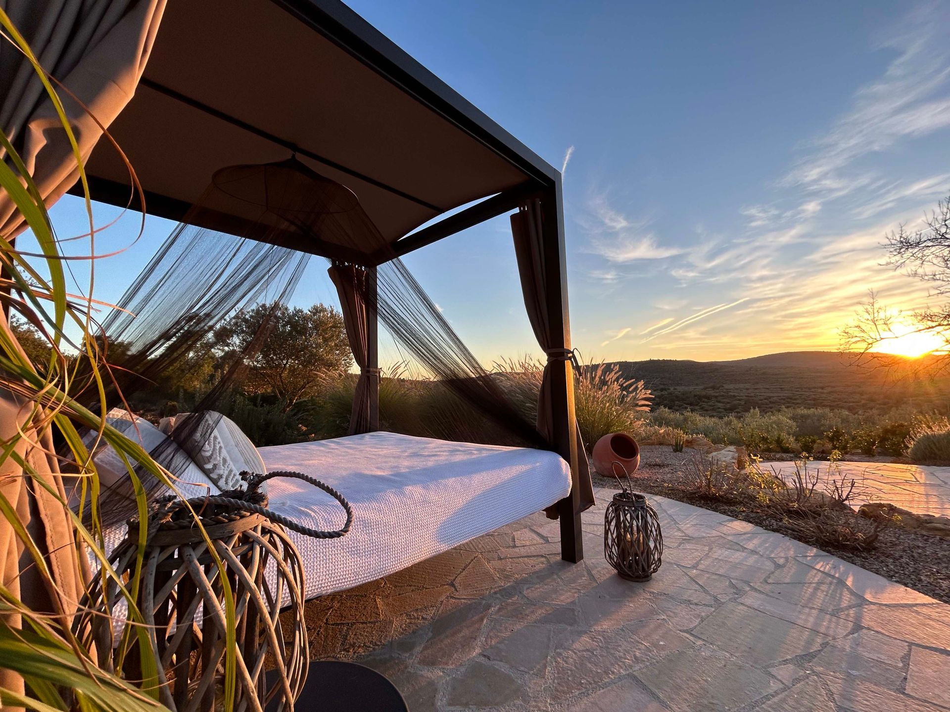 Since we added a four-poster double day-bed to our sunbathing pods, guests can now stay out and marvel all night long. Your hosts are happy to set the four-poster up as your bed for the night complete with mosquito net so you can enjoy a night under the Mediterranean sky in complete comfort.
